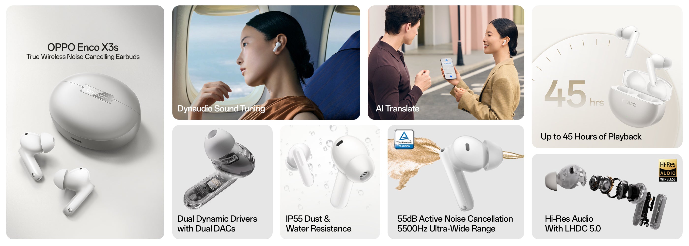 Tuned by Dynaudio, these earbuds deliver crisp, natural sound with dual dynamic drivers, Hi-Res Audio, and intelligent personalised audio profiles. Snap them on for high-fidelity music, advanced noise cancellation, and AI-powered live translation anytime.
